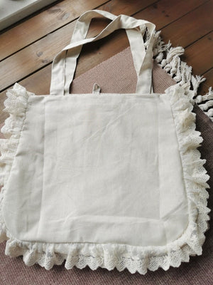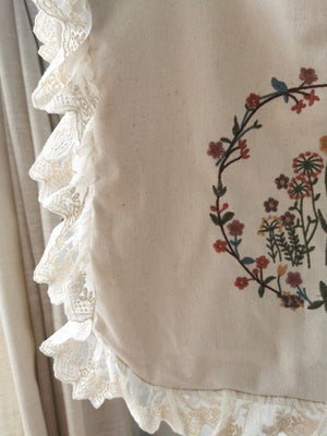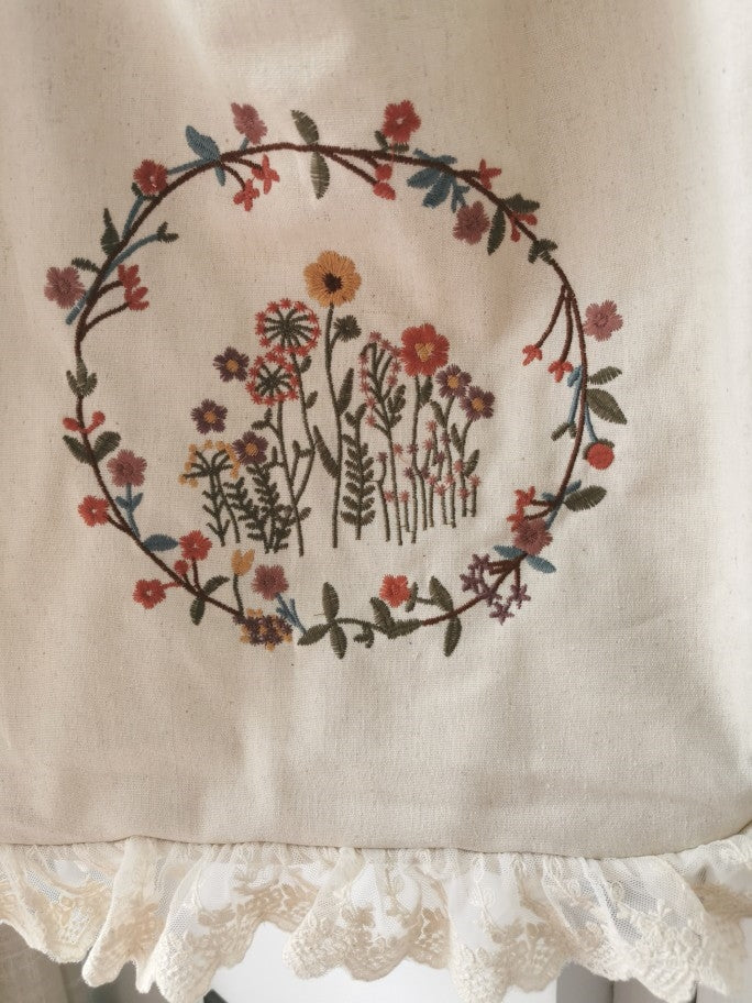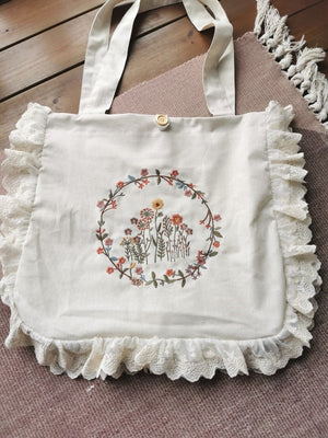 Floral Embroidered Lace Trim Linen Bag