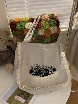 Naturecore Embroidered Linen Tote Bag