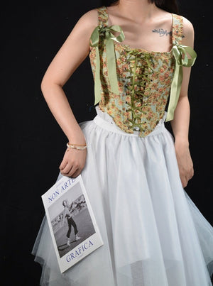 Retro Lace Up Ribbon Corset Bustier