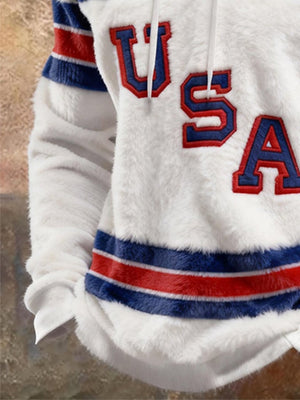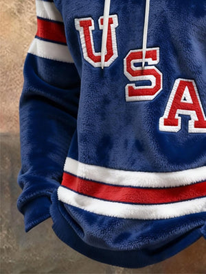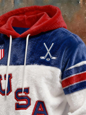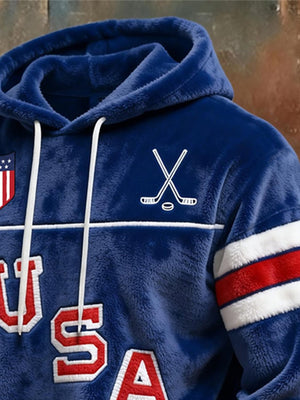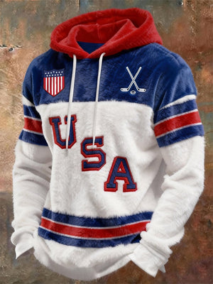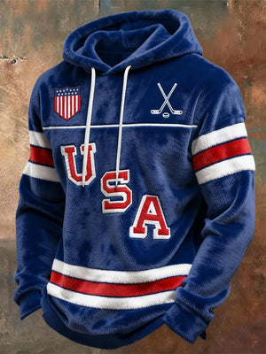 Retro Men's USA Ice Hockey Print Hoodie