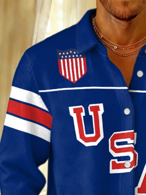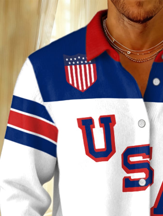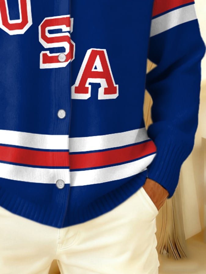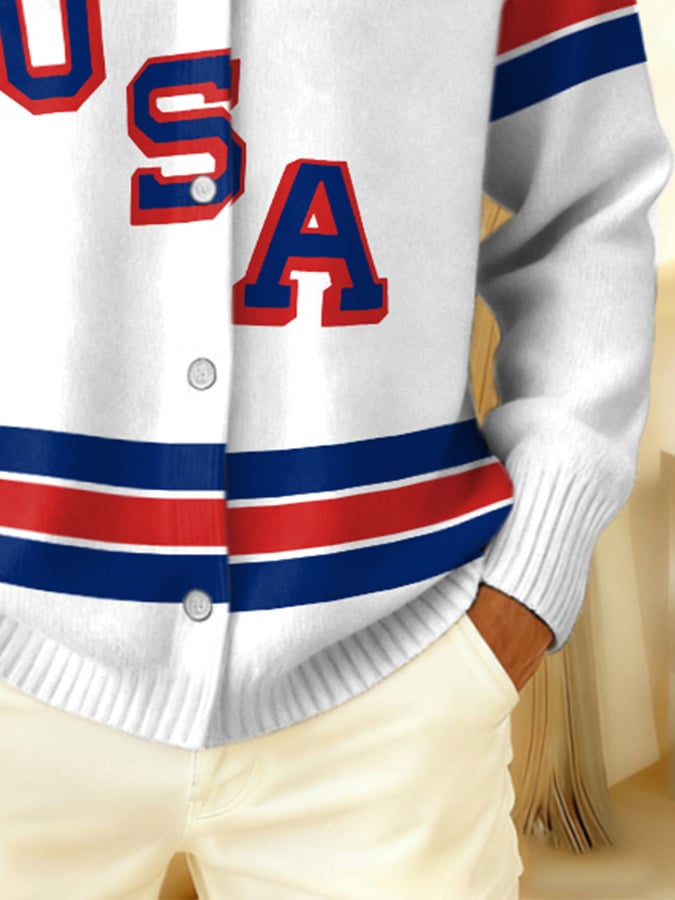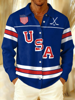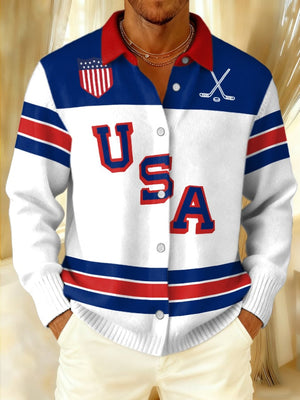 Retro Men's Usa Ice Hockey Print Knitted Tops