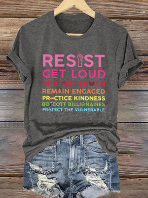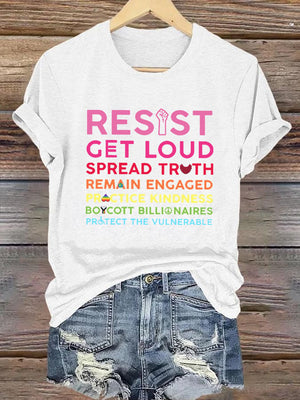 🔥Buy 3 Get 15% Off🔥Retro Resist Get Loud Spread Truth Remain Engaged Practice Kindness Boycott Billionaires Protect The Vulnerable Print T-Shirt