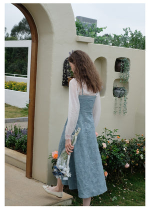 Sheer Chiffon Bottom Top + Floral Denim Pinafore Dress