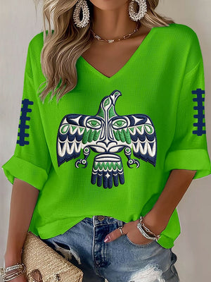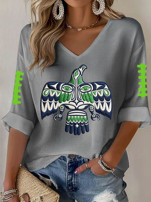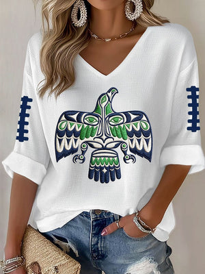Women's Football Print Waffle Long Sleeve T-Shirt
