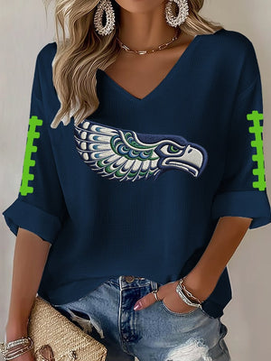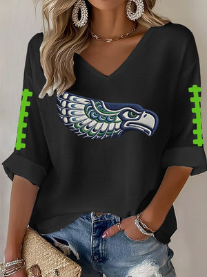 Women's Football Print Waffle Long Sleeve T-Shirt