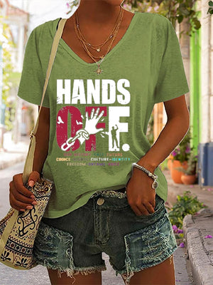 🔥Buy 3 Get 15% Off🔥Women's Hands Off Protest Printed V-Neck T-Shirt