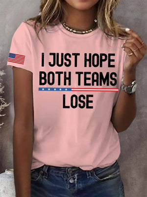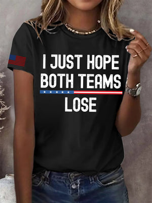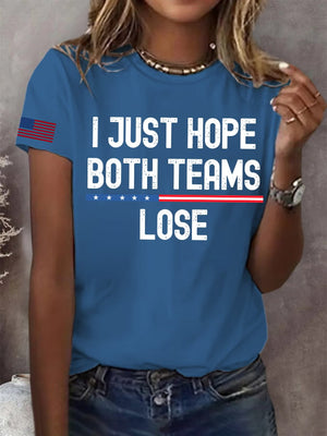 🔥Buy 3 Get 15% Off🔥Women's I Just Hope Both Teams Lose Print Round Neck T-Shirt
