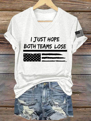 🔥Buy 3 Get 15% Off🔥Women's I Just Hope Both Teams Lose Print V Neck T-shirt