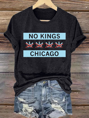 🔥Buy 3 Get 15% Off🔥Women's No Kings Chicago Flag Print T-Shirt